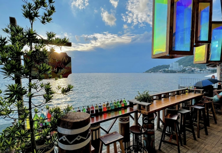 Điểm đặc biệt là những chiếc bàn được kê sát mép biển, nơi bạn có thể vừa nhâm nhi ly cà phê thơm nồng, vừa lắng nghe tiếng sóng vỗ rì rào – một trải nghiệm mang đến sự bình yên hiếm có. Ngoài các loại cà phê, trà sữa hay nước ép trái cây, quán còn phục vụ cả bữa tối với nhiều món hải sản tươi ngon, rất thích hợp để tụ tập cùng bạn bè hoặc có một buổi hẹn hò lãng mạn bên người thương.
