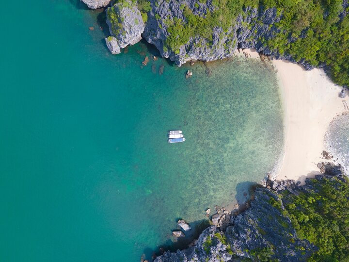 Part of the UNESCO-inscribed Ha Long Bay – Cat Ba Archipelago, Cat Ba mixes accessible sands (Cat Co 1–3) with short hikes and boat trips through Lan Ha’s karst maze. Sand is fine and light-colored, the gradient modest, and the clean sandy bottom makes for easy, confidence-building entries. With headlands on both sides and a shield of islets offshore, short-period waves are typical and chop is limited, especially mornings. At lower tides the foreshore widens for easy walks along the rock base; at higher tides steps drop almost straight to the sea for quick dips. Sun World Cat Ba Cable Car shortens the mainland transfer (its record-holding pillar underlines the scale), making beach time more accessible. It’s a neat package—calm coves, karst views, quick logistics—squarely in the best beaches in Southeast Asia.