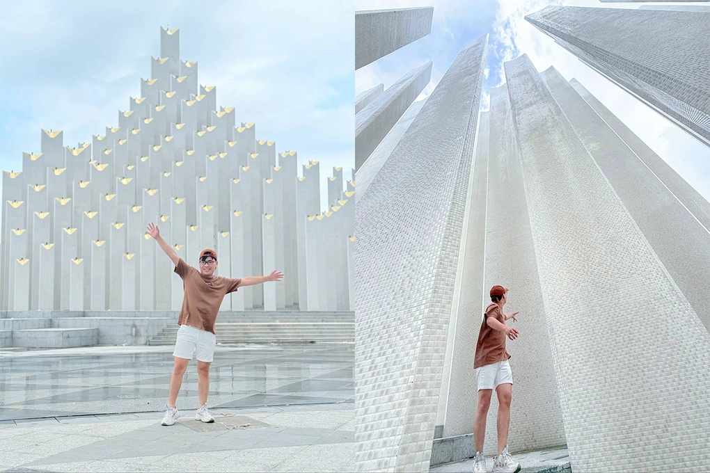Du khách thích thú check in tại Quảng trường Tam Thắng vào sáng sớm (Nguồn: Báo Dân trí)
