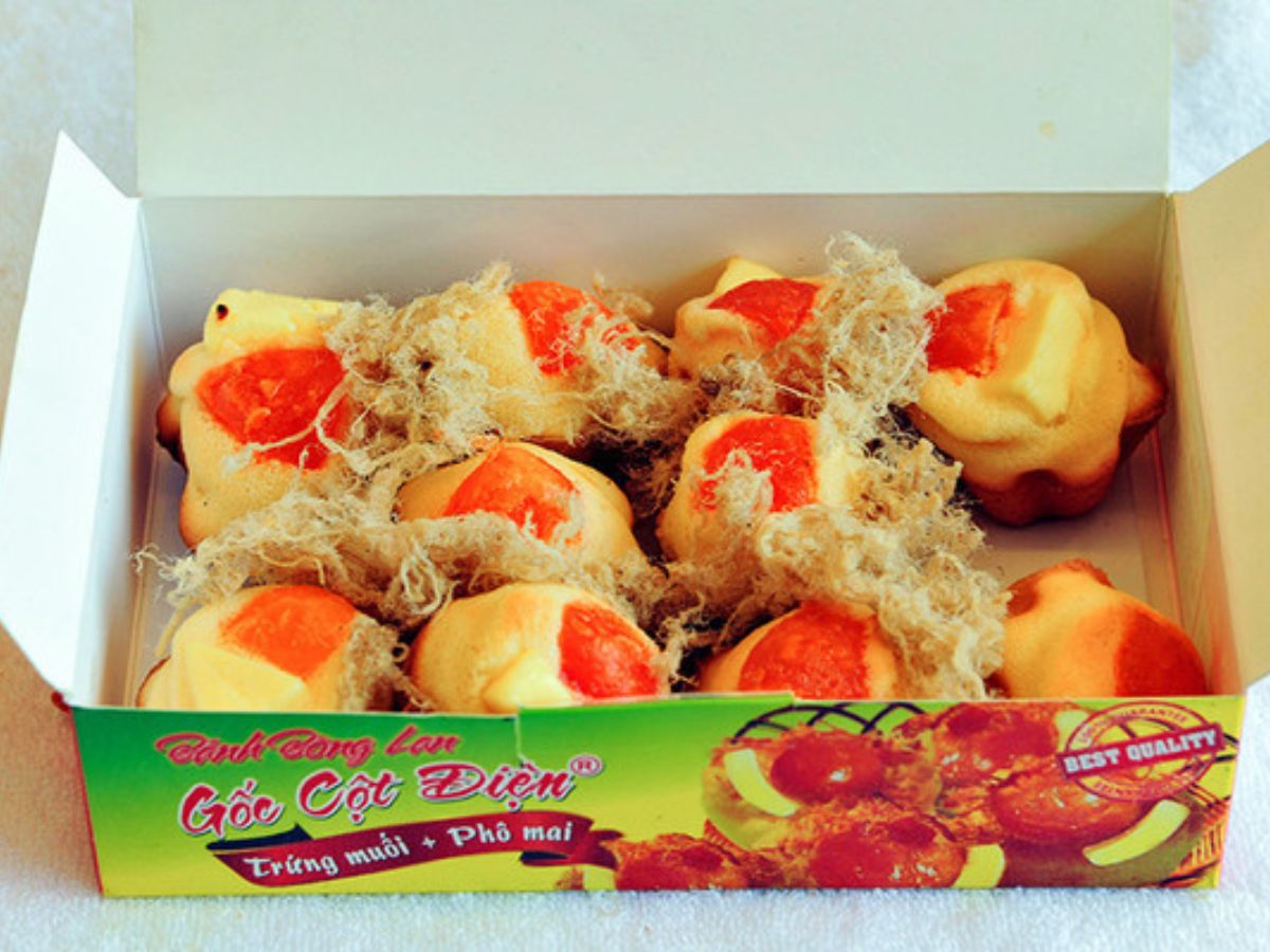 Tiệm Gốc Cột Điện là một trong những địa chỉ gắn liền với hình ảnh bánh bông lan trứng muối Vũng Tàu, nổi bật nhờ lịch sử lâu đời và sự tin tưởng của khách hàng. Nằm tại 17B Nguyễn Trường Tộ, phường Vũng Tàu, cửa tiệm này nổi tiếng với những chiếc bánh nhỏ nhắn, được nướng trên lò than theo phương pháp truyền thống.