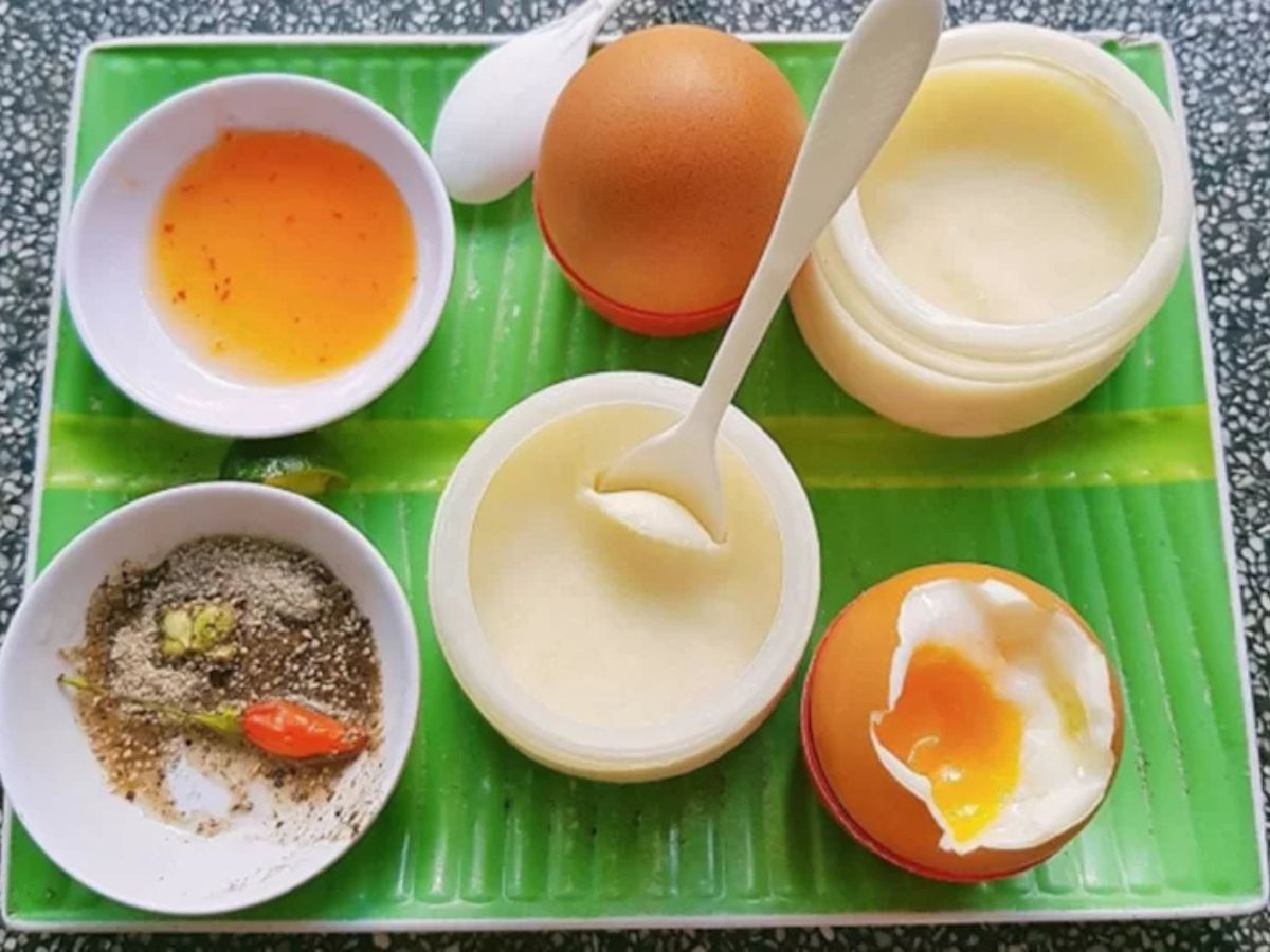 Khi hoàn thiện, món ăn được bày trí tinh gọn và đẹp mắt: hũ yaourt thủy tinh nhỏ đặt cạnh trứng lòng đào bóc vỏ, đi kèm muối tiêu tắc hoặc nước chấm đặc trưng. Sự chăm chút trong từng chi tiết giúp món ăn không chỉ ngon miệng mà còn hấp dẫn về mặt thị giác, đúng chất ẩm thực tinh tế của thành phố biển.