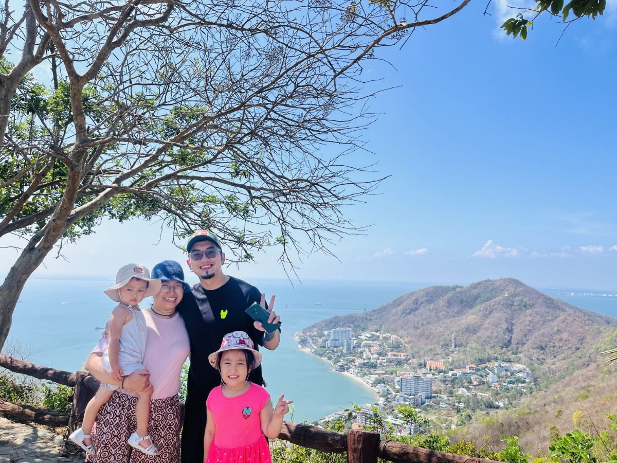 Sáng hôm sau, hành trình bắt đầu với chuyến leo Núi Nhỏ, cung đường dễ đi, an toàn cho cả gia đình. Trên đỉnh núi là Tượng Chúa Kitô Vua, nơi có cầu thang rộng và lan can chắc chắn, phù hợp cho trẻ lớn đi cùng cha mẹ. Từ đây, bạn có thể ngắm nhìn toàn cảnh biển xanh từ trên cao.