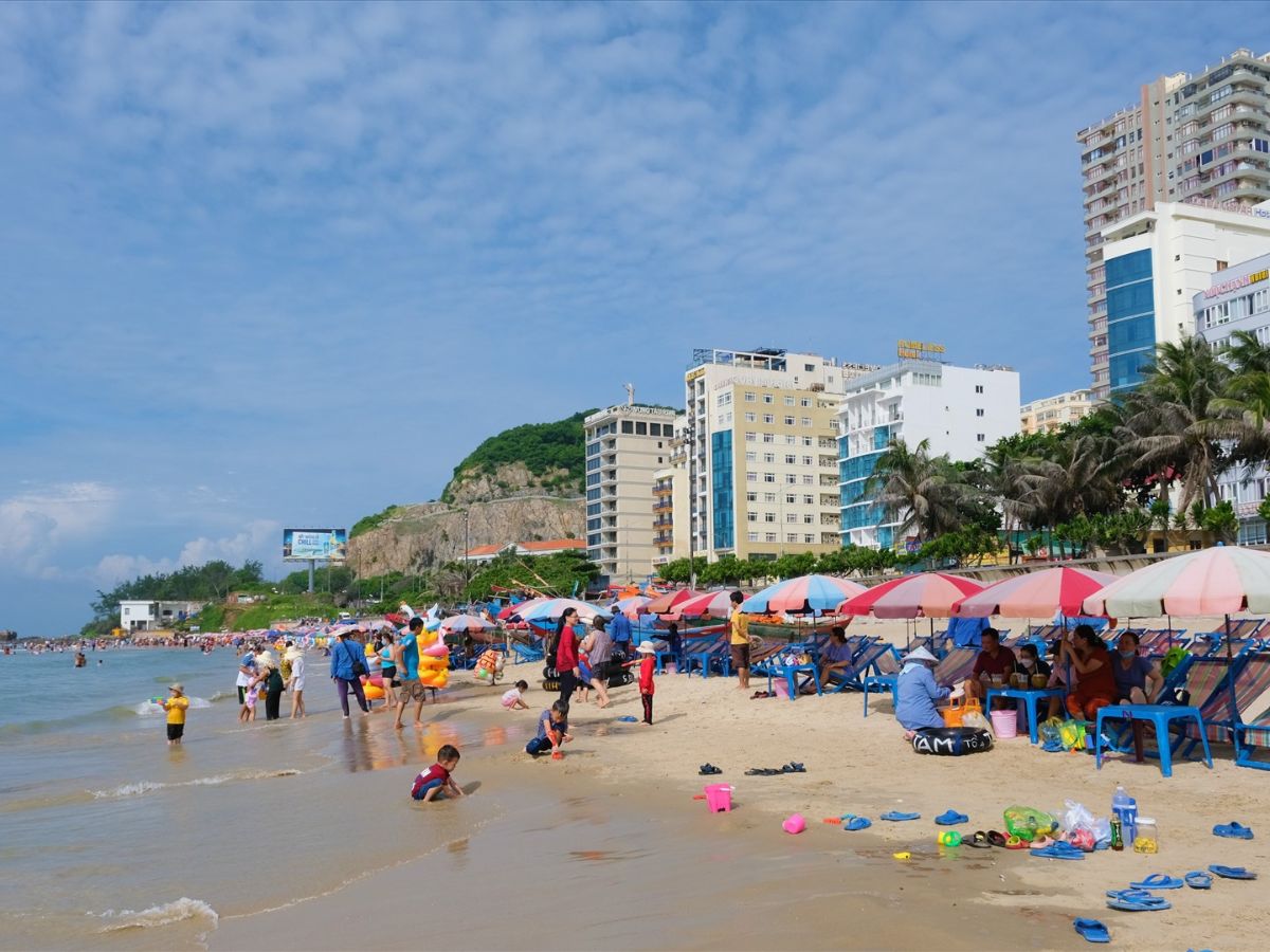 Khi có trẻ nhỏ, bạn có thể ra biển sáng sớm thay vì chiều để tránh đông đúc. (Nguồn: Báo dân trí)