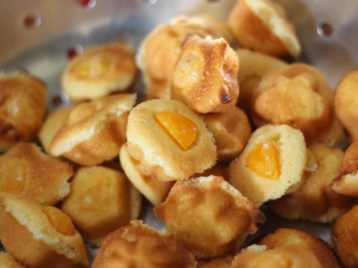 Nhắc đến bánh kẹo đặc sản Vũng Tàu, bánh bông lan trứng muối là món đầu tiên phải kể tới bởi đây là biểu tượng cho nghệ thuật ẩm thực của vùng biển này. Lớp bánh mềm nhẹ, xốp mịn, quyện cùng vị ngọt nhẹ nhàng và trứng muối đậm đà, được phủ thêm lớp chà bông thơm lừng, tạo nên tổng thể hương vị hài hòa, khó phai.